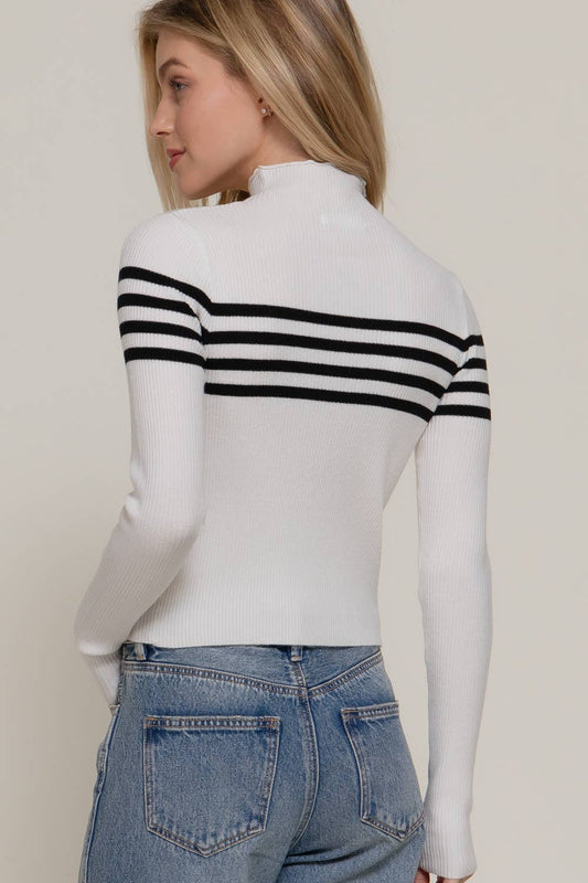 High Neck Stripe Sweater Top