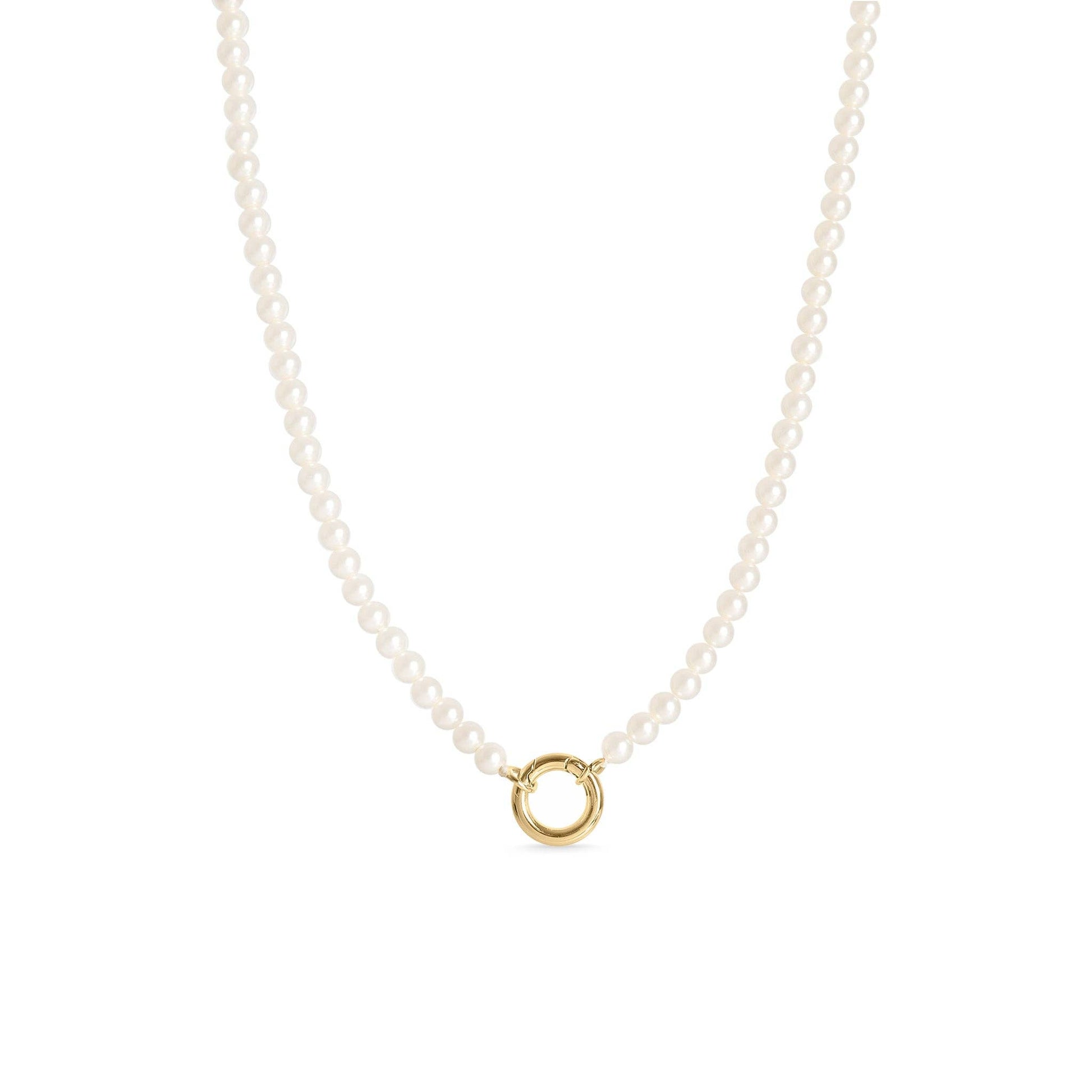 Beaded Pearl Charm Keeper Necklace: Gold