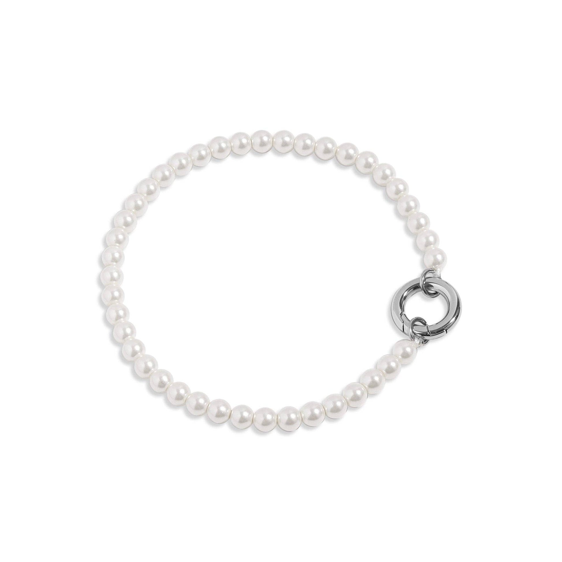 This Waterproof, Non-tarnish, Hypoallergenic, Stainless Steel Beaded Pearl Charm Keeper Bracelet is a simple and stylish accessory featuring 4mm glass pearls and a secure stainless steel charm holder. Wear it alone or add your favorite small charms to personalize your look. It's perfect for everyday wear and easy to mix with other bracelets.