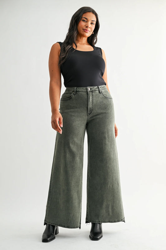 PLUS High Rise Wide Leg Vintage Wash Denim